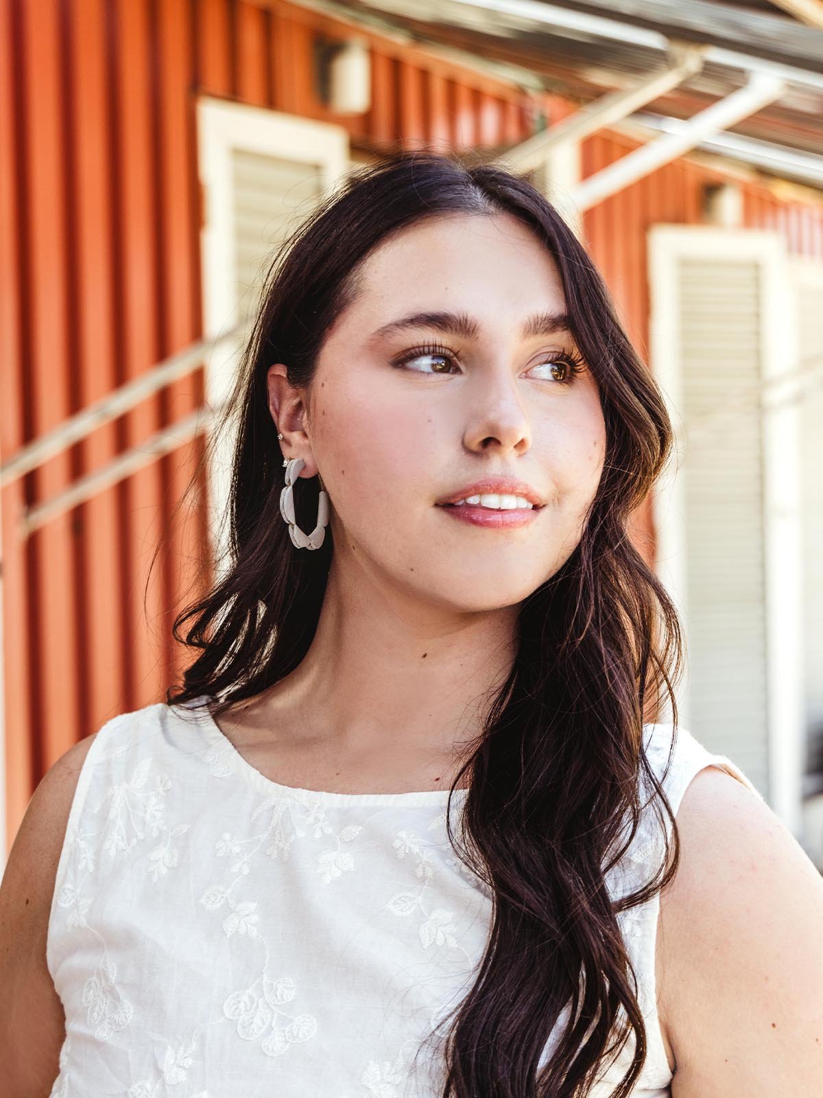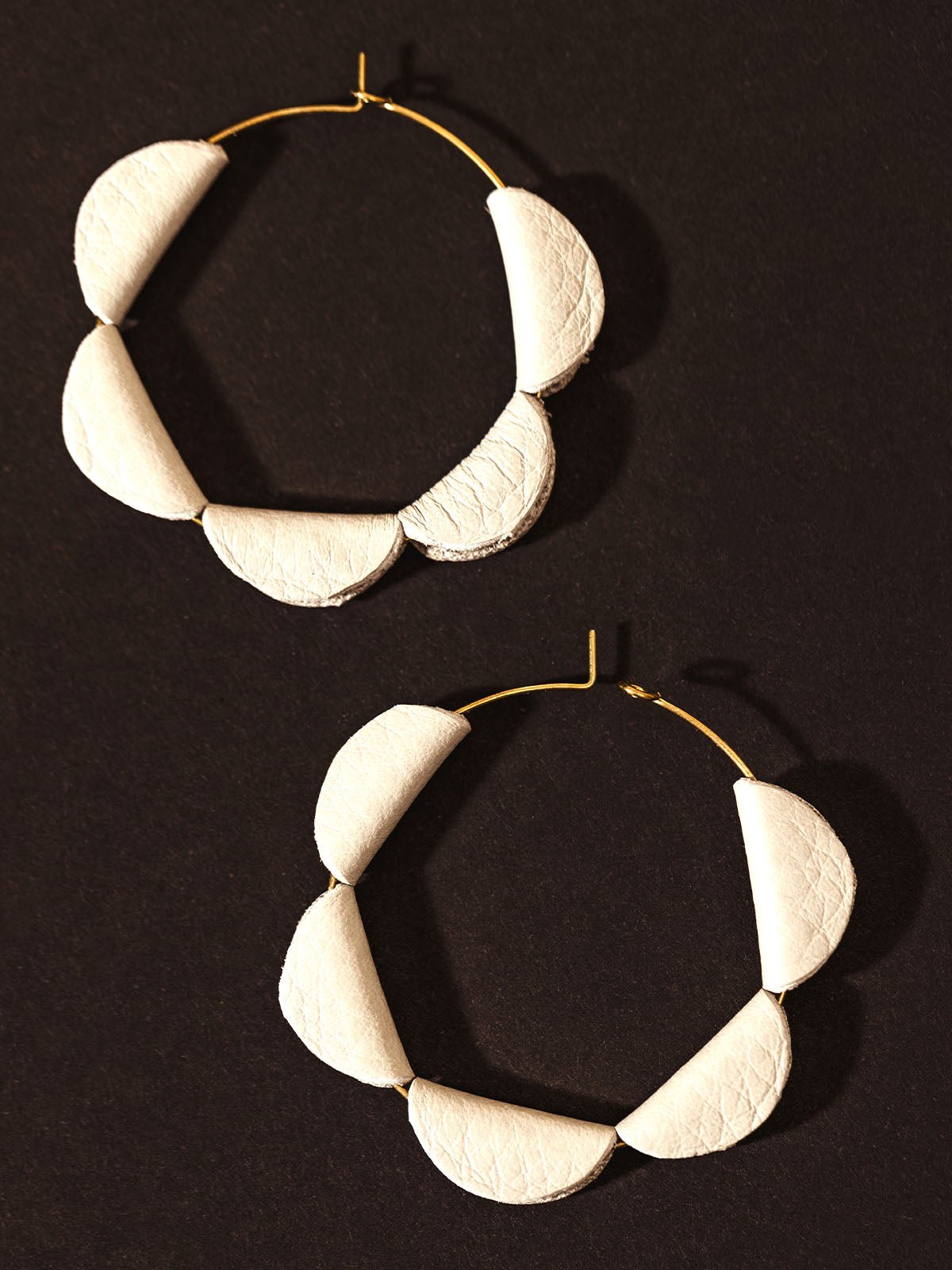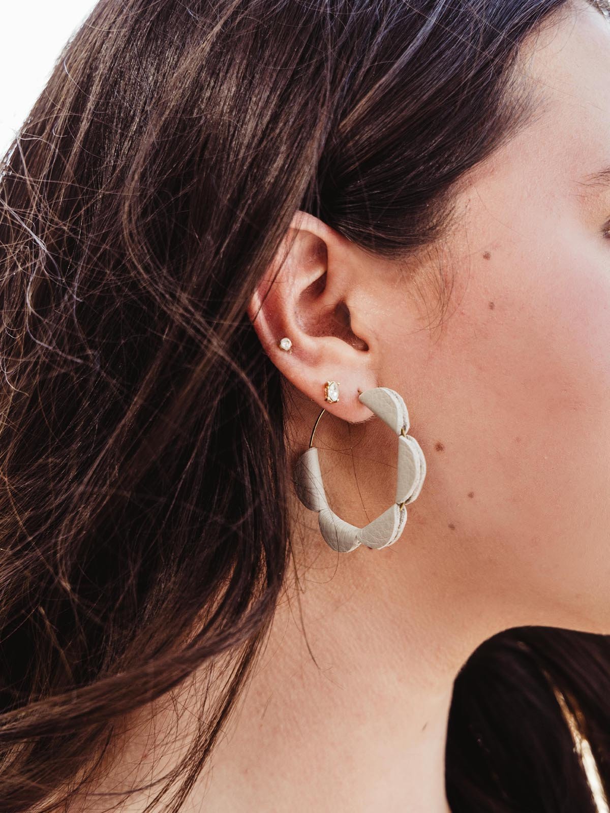 The Everly Hoop Earrings are a classic hoop with unique and beautiful details. These earrings feature delicate circles of leather that encircle a gold hoop. resembling a floral motif. Available in chestnut brown. these hoops are perfect for a natural but elegant look. The Everly Hoops are handcrafted by women living in underprivileged areas who are empowering themselves to create better lives.