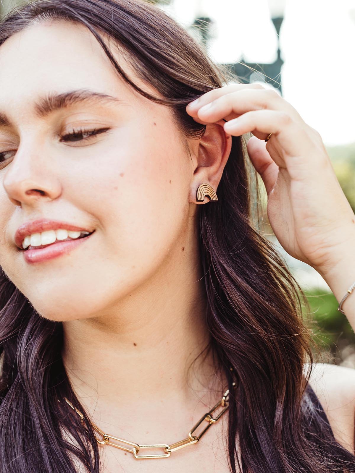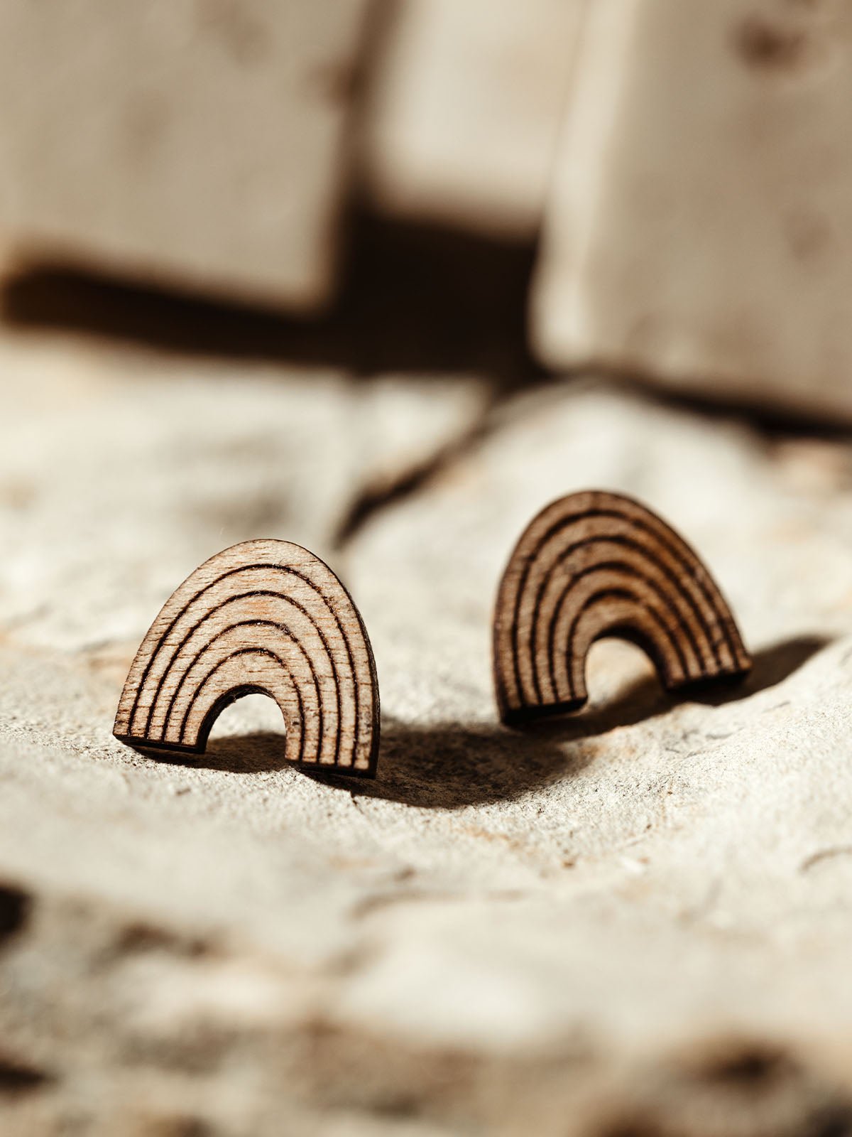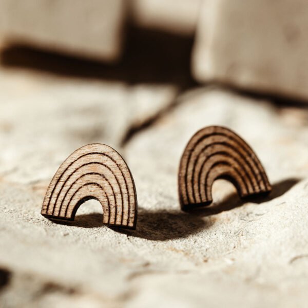 Embrace a daily reminder of faith and hope with the Promise Studs. These delicately carved wooden rainbow earrings are a symbol of steadfastness. Designed with beauty and comfort in mind. the Promise Studs feature nickel-free posts. making them an ideal choice for sensitive skin or delicate lobes.